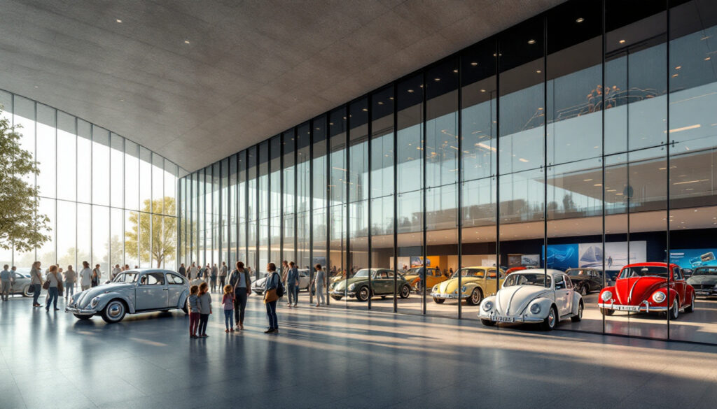 The ZeitHaus museum, located in the heart of Autostadt in Wolfsburg, is much more than just a museum. It is a space where automotive history comes to life, where each vehicle tells a story and highlights the evolution of mobility through the ages. This iconic building, made of glass and steel, houses over 260 classic cars, offering a fascinating dive into 130 years of automotive innovation. The collection, although dominated by Volkswagen models, spans over 60 different brands, showcasing the richness and diversity of the global automotive industry. Let yourself be guided into this world where each car is a work of art in its own right.