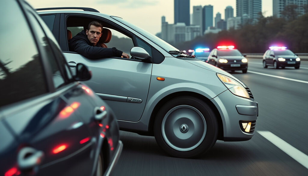 Thus, the driver's frantic escape is an act of extreme risk-taking, driven by a motivation that likely surpasses mere fear of an identity check. The choice of the Renault Espace as an escape vehicle in these circumstances embodies a form of illusion of control on the road.